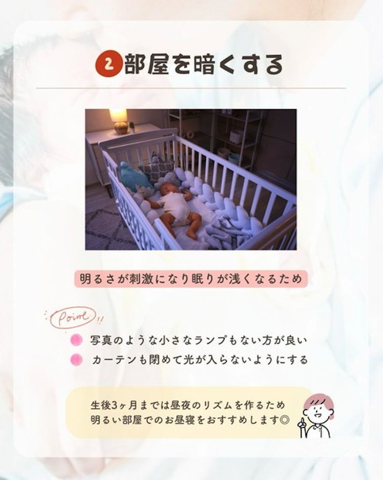 赤ちゃんは明るい環境よりも、少し暗い環境の方が眠りやすくなります。