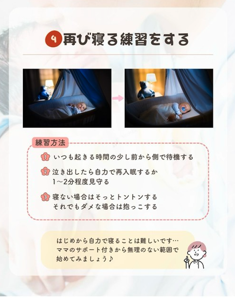 少しずつ「自分で寝る力」を育てていくことも大切です。