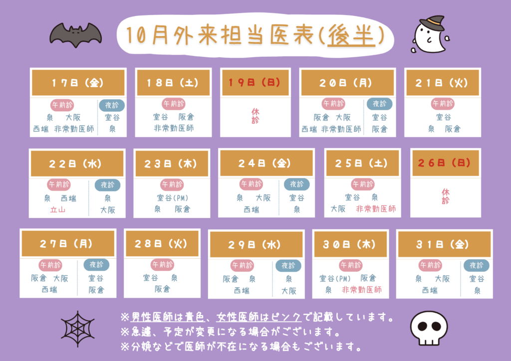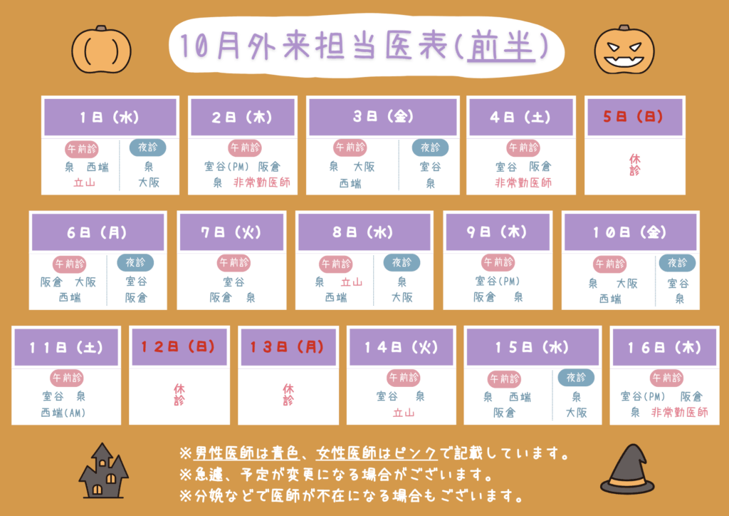 2025年10月の外来担当医表をお知らせさせていただきます💭