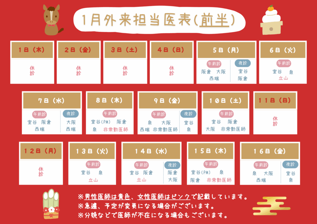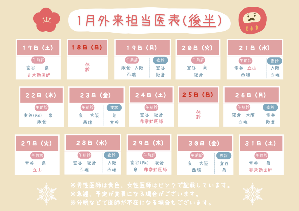 2026年1月の外来担当医表をお知らせさせていただきます💭
