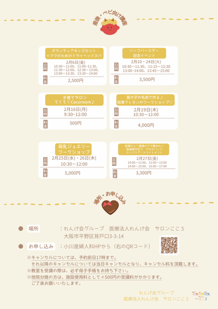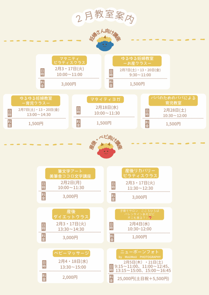2月の教室の日程が決まりました🤍