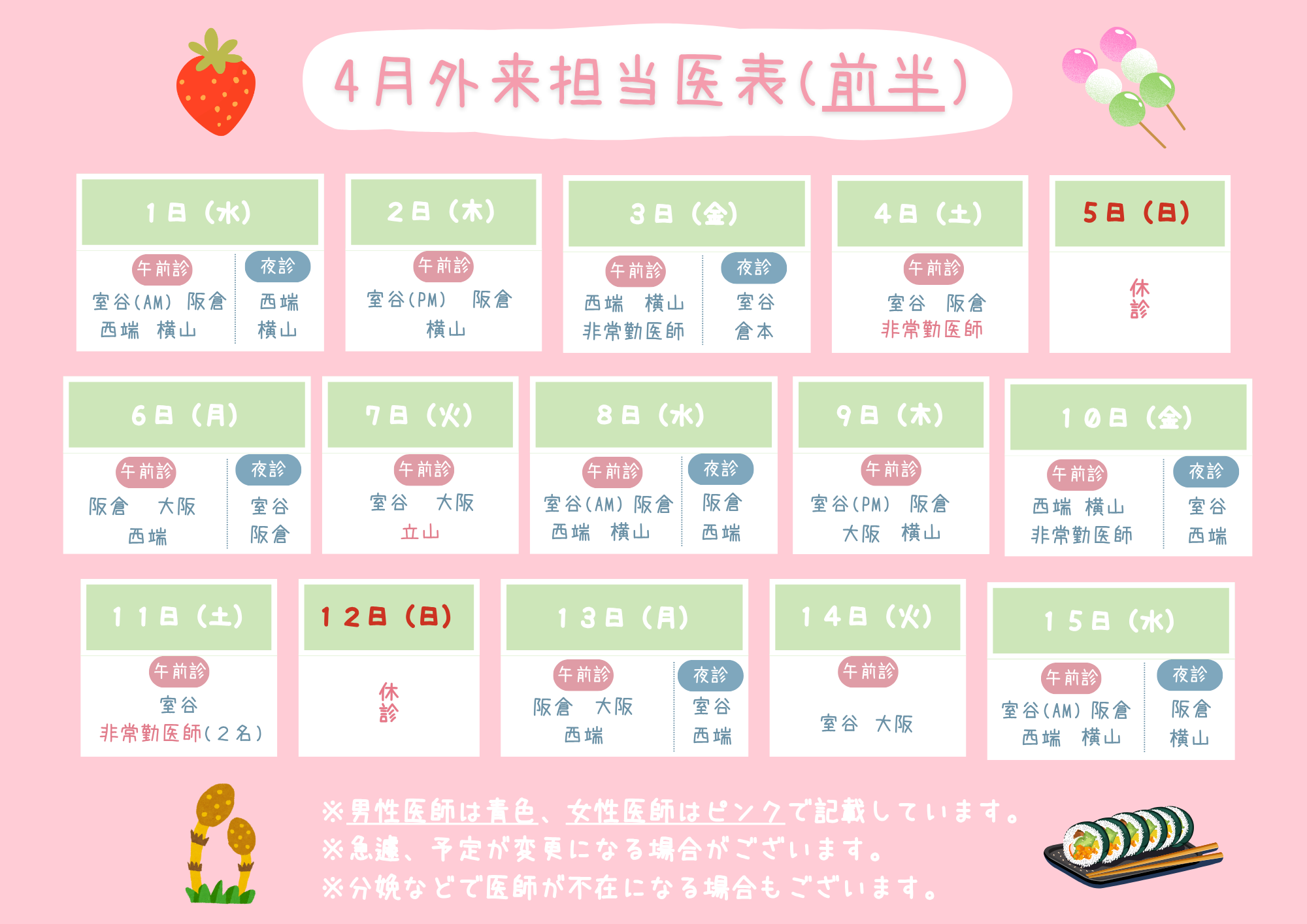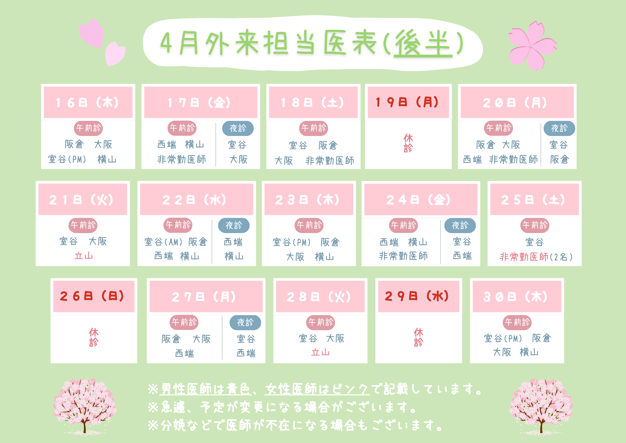 2026年4月の外来担当医表をお知らせさせていただきます💭